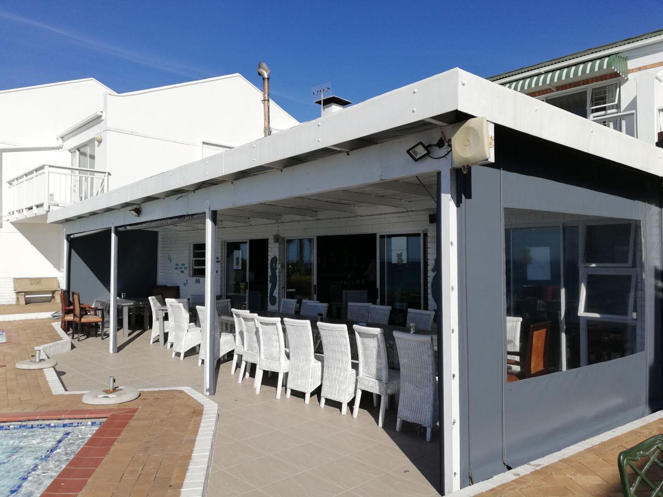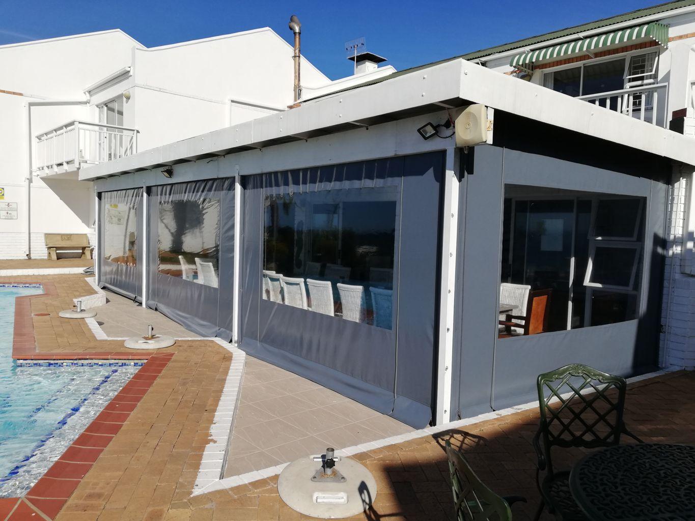 These PVC outdoor blinds were installed at Blackbeards Restaurant, at the Chapman Hotel.